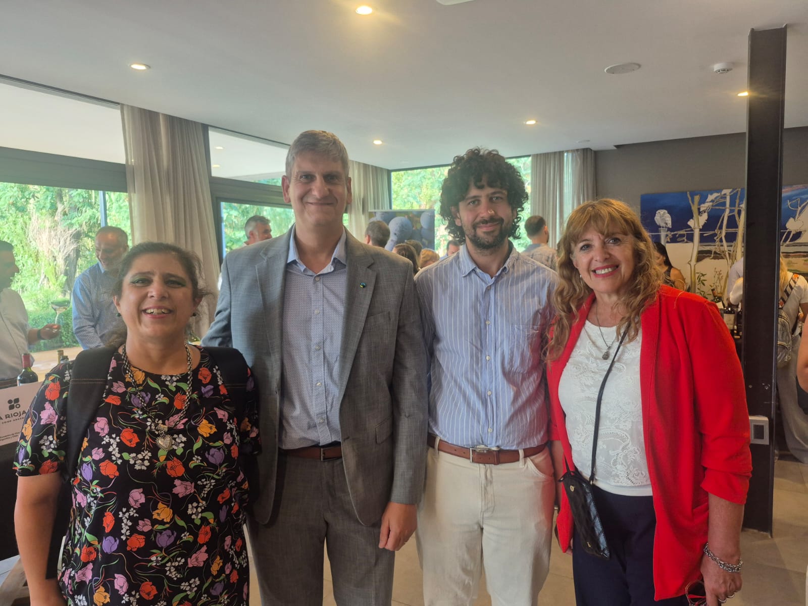 The organizers, Norberto Gugliotta from CLAC and Andrés Valero from AVINEA Group, with the representatives of ProMendoza, Patricia Giménez and Carolina Suárez Garcés. during the wine tasting.