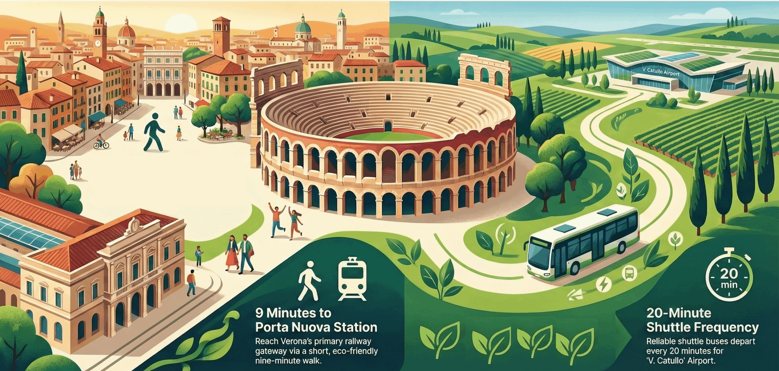 Logistics are supported by an infrastructure that connects transport hubs directly with the surrounding wine regions. Valerio Catullo Airport, located just 10 kilometers from the center, is linked to the Verona Porta Nuova railway station via the Verona Airlink service, which guarantees departures every 20 to 40 minutes, making international arrivals exceptionally smooth. This connectivity extends into the heart of the countryside via the local public transport network managed by ATV.